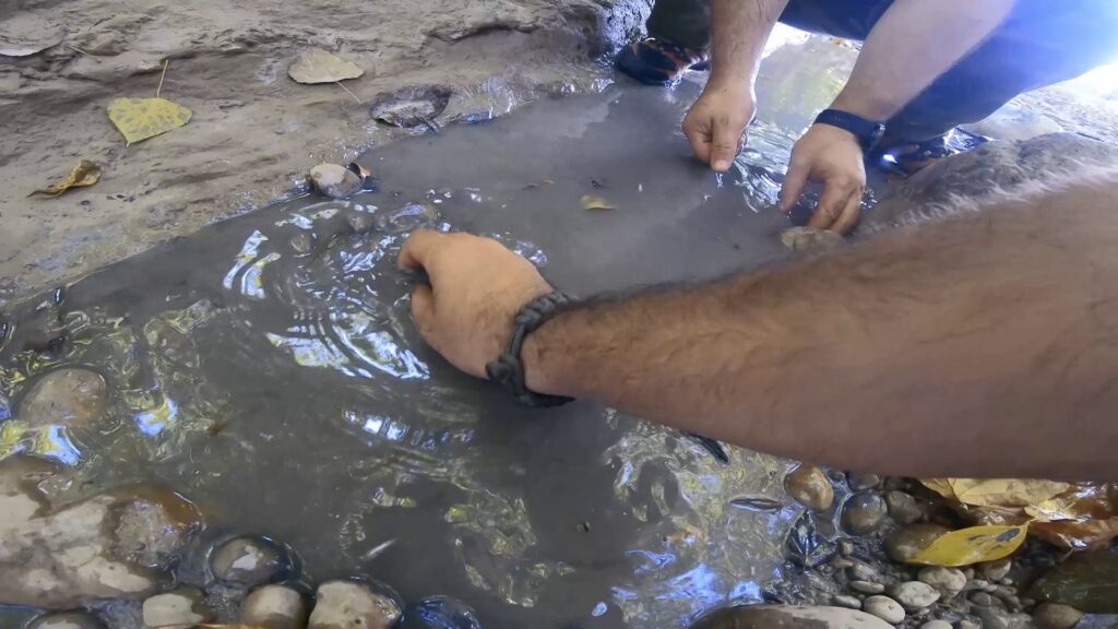Taşların arasına ve biriken suların içerisine elleriyle ve sepet ağ ile müdahale eden iki arkadaş yavru balıkları toplayarak su dolu bir varilin içerisine koydu. İki arkadaş kurtardıkları onlarca balığı vadide kaynak suyu ile beslenen ve kurumayan noktadaki su ortamına bırakarak özgürlüklerine kavuşturdular.