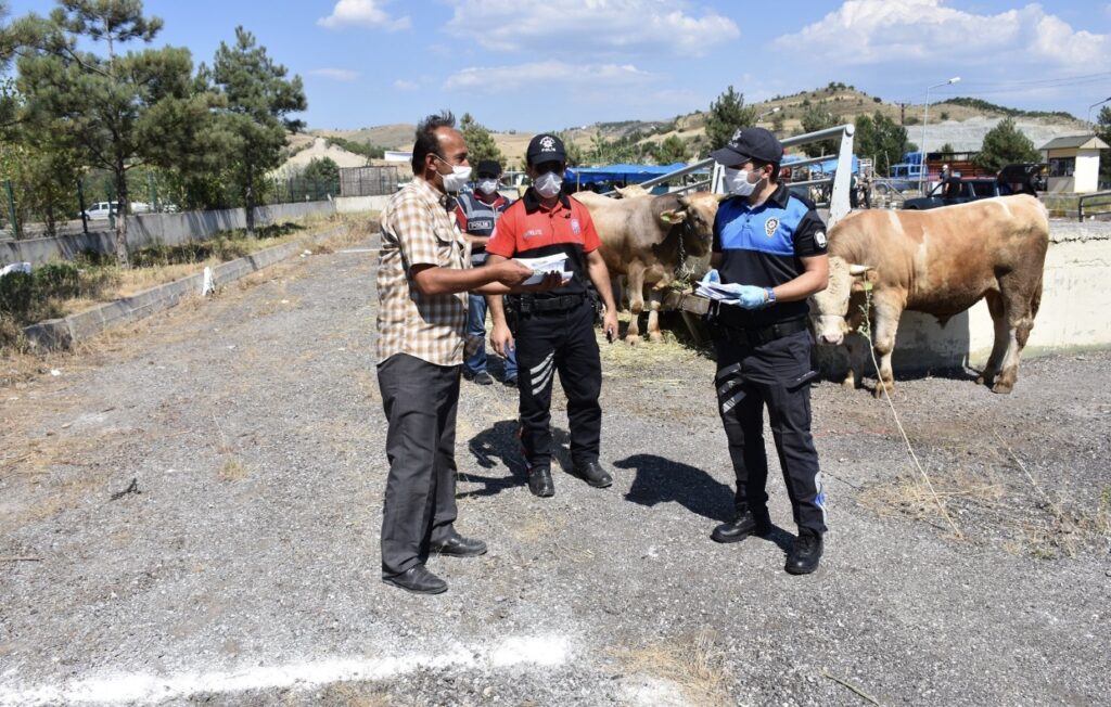 Karabük İl Emniyet Müdürlüğü ekipleri tarafından Melise köyü mevkisinde bulunan kurbanlık hayvan pazarında hırsızlık, dolandırıcılık ve parada sahtecilik olaylarına karşı, kontrollü sosyal hayat kurallarına riayet edilerek vatandaşlara broşür dağıtıldı.