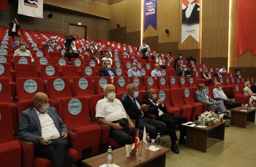KARDEMİR Eğitim ve Kültür Merkezi’nde yapılması planlanan genel kurul için fabrikaya gelen hissedarlar korona virüs (Covid-19) tedbirleri kapsamında ateşleri ölçülerek salon alındı.