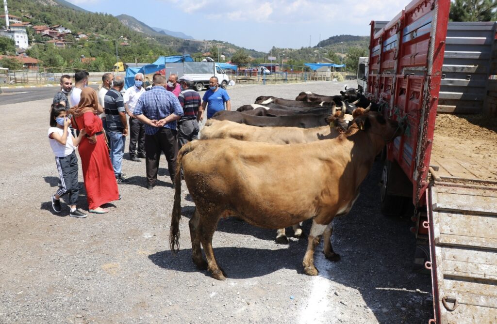 Karabük’te Kurban Bayramı öncesi kurulan hayvan pazarında bu yıl koronavirüs dolayısıyla durgunluk yaşanıyor.