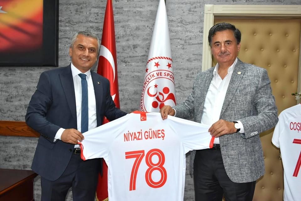 Coşkun Güven ziyaretin ardından Karabük Milletvekili Niyazi Güneş’e Türkiye forması hediye etti.