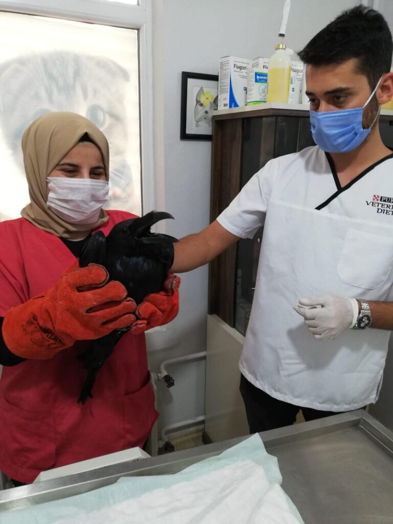 Karabük’te yürüyüş yapan memur emeklisi Nahit Yıldız, uçamayan yaralı kuzgunu besleyip ve su verdikten sonra Doğa Koruma Milli Parklar Şubesi ekiplerine teslim etti. Sol kanadı kırık olduğu belirlenen kuzgun, tedaviye alındı.